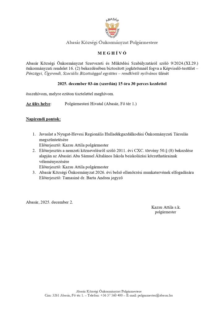 Meghívó Képviselő Testületi ülésre