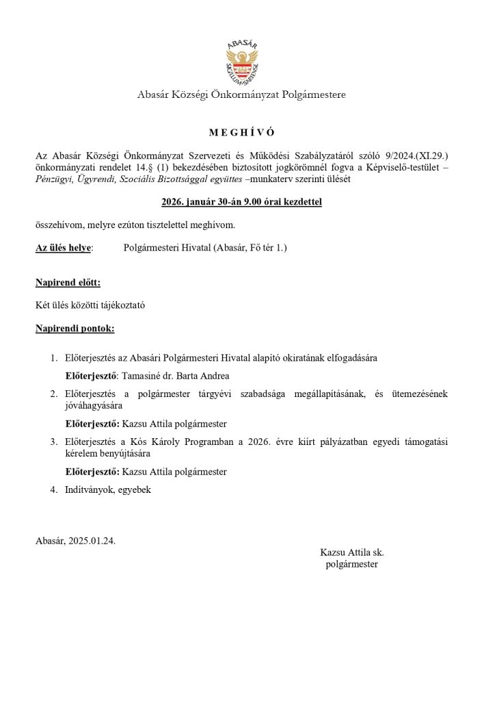 Meghívó Képviselő Testületi ülésre