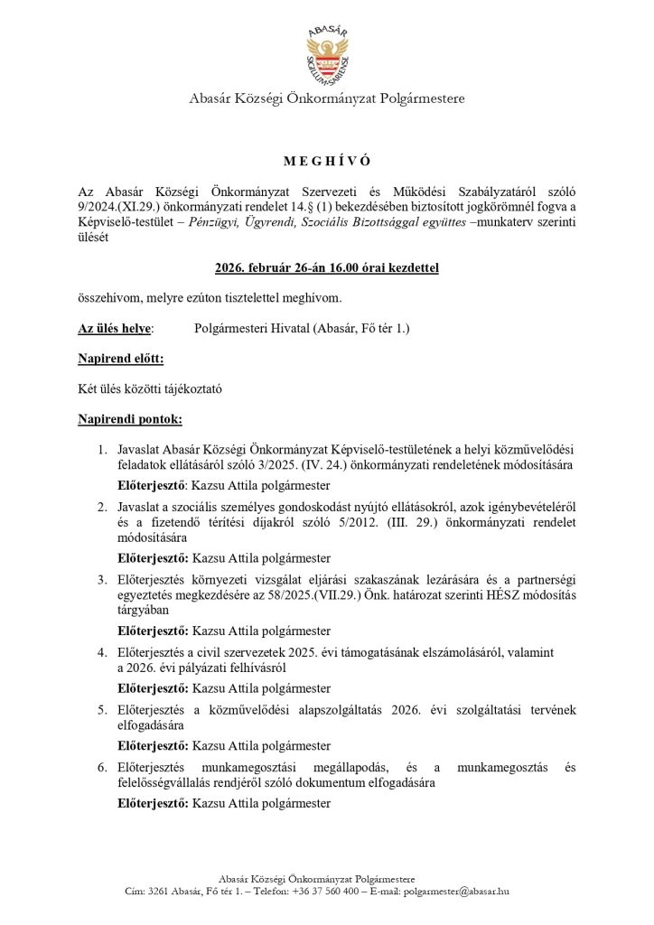 Meghívó Képviselő Testületi ülésre